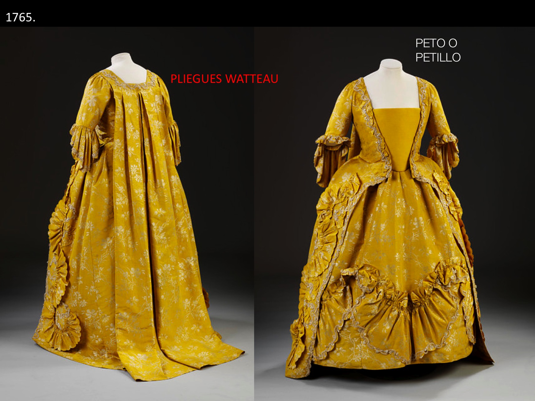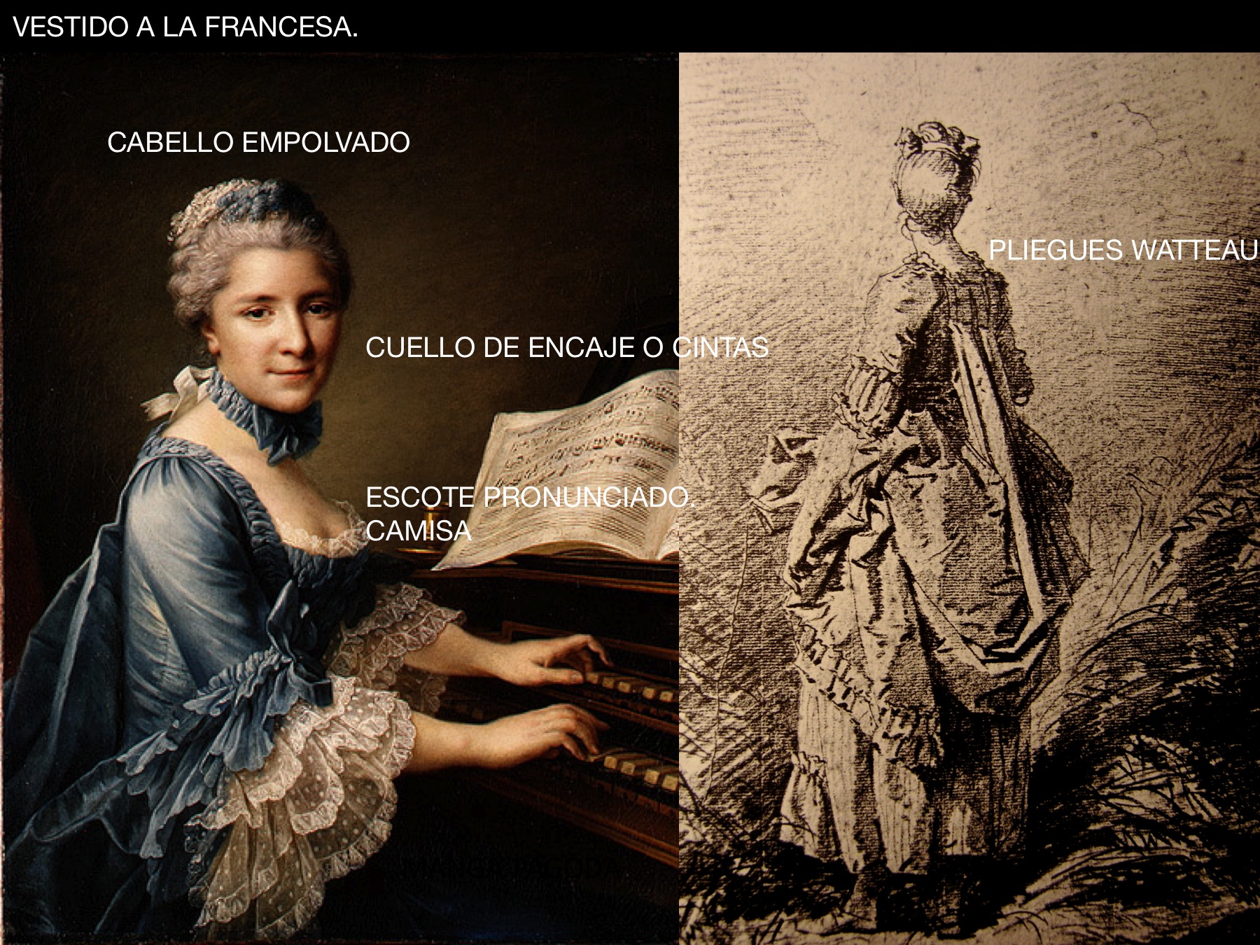 El vestido a la francesa o de pliegues Watteau es quizás el más característico el periodo Rococó.