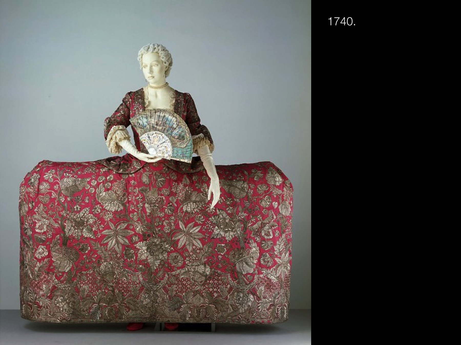 El ancho de la falda con tontillos se torna exagerado.