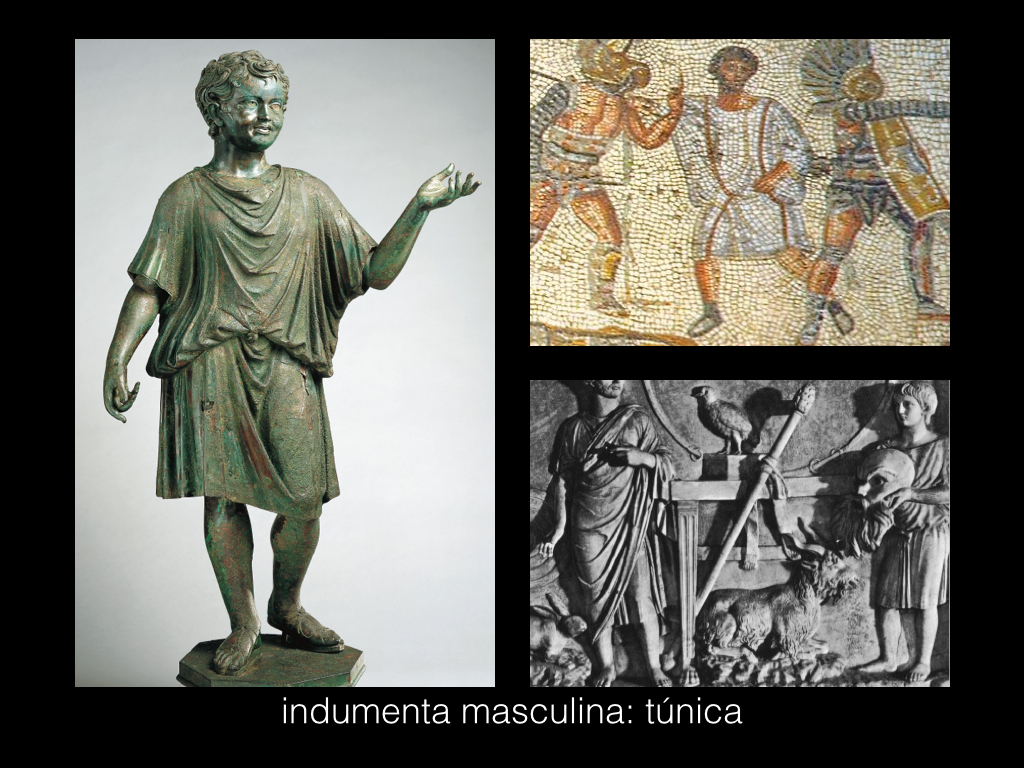 Es notorio el uso de color tanto para mujeres como para hombres. El color púrpura está reservado para la pareja imperial (púrpura real o de Tiro) y se obtiene de una especie de caracol que habita el mar Mediterráneo.