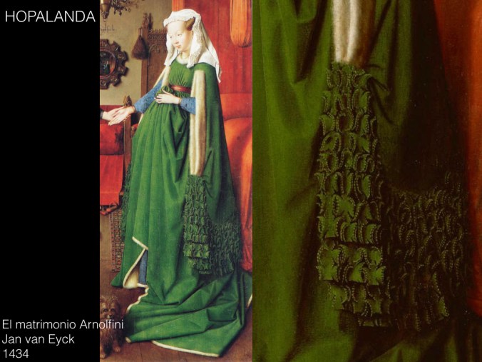 El rol de los textiles es de gran importancia en la competencia por la igualación/diferenciación social. Al ser todas las prendas de uso extendido en las diferentes clases sociales, el material con el cual se confeccionan es el factor distintivo: brocado, damasco, terciopelo y raso para la nobleza (ver Duque de Berry), y paños muy coloridos para los burgueses (ver matrimonio Arnolfini).