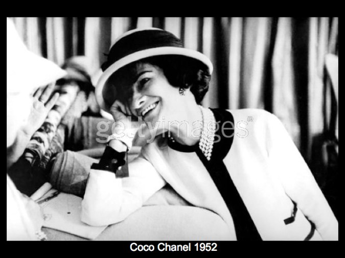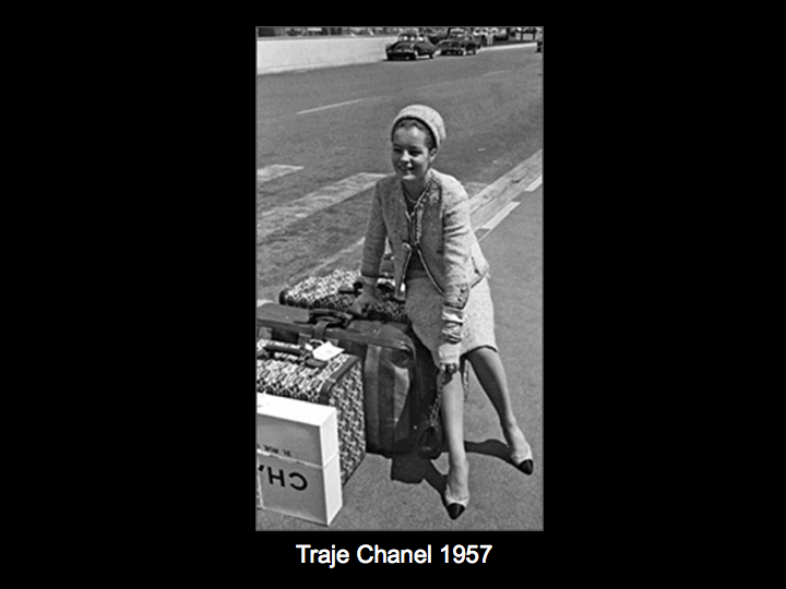 Gabrielle Chanel, que había cerrado su maison al comenzar la Segunda Guerra Mundial, vuelve a mediados de la década con una colección fiel a sus orígenes: trajecitos de líneas simples (ahora de tweed), combinando blanco con negro o crudo con azul, complementados por sus características perlas o cadenas doradas, camelias, carteras matelaseadas y zapatos bicolores. Rapidamente se ubica nuevamente entre las casas de moda más influyentes.