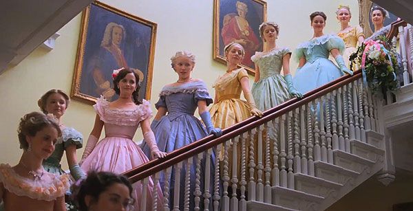La sensación de confinamiento del hogar se extiende a la vestimenta. Sus prendas diarias consisten en uniformes escolares cuadrados y tradicionales. Para el baile de graduación, su madre está tan angustiada por el crecimiento de sus hijas que agrega franjas de tela a sus vestidos ya deslucidos.