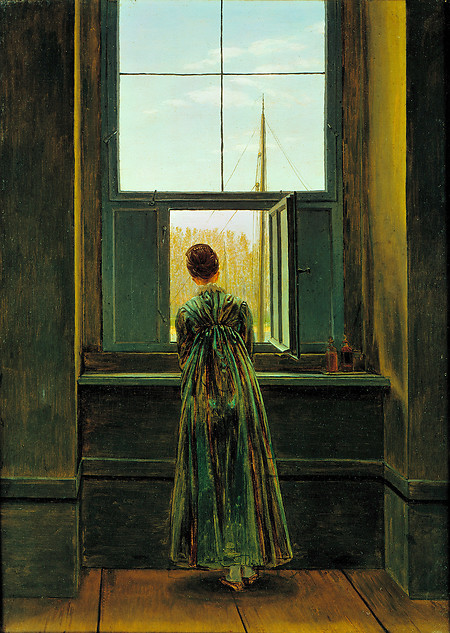 Esta exposición se centra en un tópico atesorado por los románticos: la vista a través de una ventana abierta. Los artistas alemanes, franceses, daneses y rusos tomaron el tema por primera vez en la segunda década del siglo XIX. Yuxtaponiendo cerca y lejos, la ventana es una metáfora del anhelo incumplido. Los pintores destilaron este sentimiento en imágenes de habitaciones desocupadas y silenciosas con figuras contemplativas, estudios con artistas trabajando, y ventanas abiertas como motivo único.