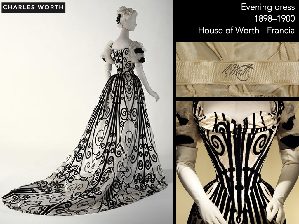 Charles Frederick Worth es el modisto inglés que lideró la moda parisina durante la segunda mitad del Siglo XIX, bajo el dominio de Napoleón III. Vistió entre otras figuras muy relevantes a la española Eugenia de Montijo, emperatriz de Francia (esposa de Napoléon III). Charles estableció su casa «House of Worth», donde preparaba una variedad de diseños que presentaba en vivo a sus clientas, lucidos por modelos. A partir de esta muestra las clientas seleccionaban las piezas de su interés para ser posteriormente confeccionadas a medida en el atelier. Luego del fallecimiento del fundador en 1895 «House of Worth» continuó exitosamente con su producción a cargo de tres generaciones familiares hasta su cierre en 1952.