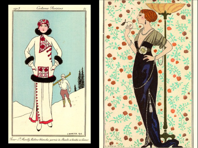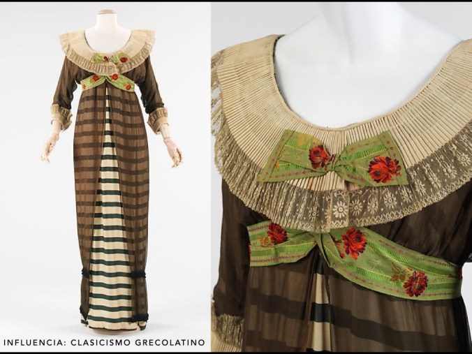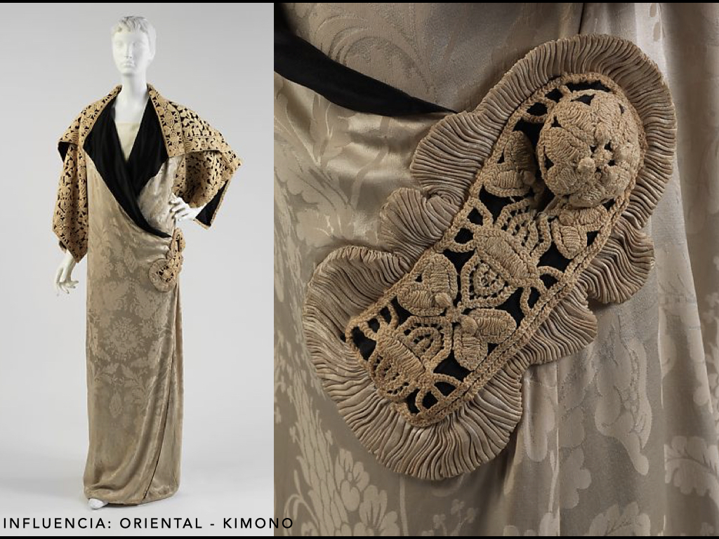Tanto en la silueta como en la ornamentación de los trajes y accesorios vemos una fuerte influencia del Art Nouveau, el estilo artístico y decorativo predominante durante la Belle Époque francesa. Este movimiento también tiene lugar en otros países, y si bien comparte muchas características formales con el estilo francés, desarrolla también sus particularidades así como su propio nombre: Modernismo en España, Secession o Jugendstil en Austria y Alemania, Liberty en Italia. Pueden acceder a más información sobre este tema en nuestra publicación Siglo XIX reformas en diseño