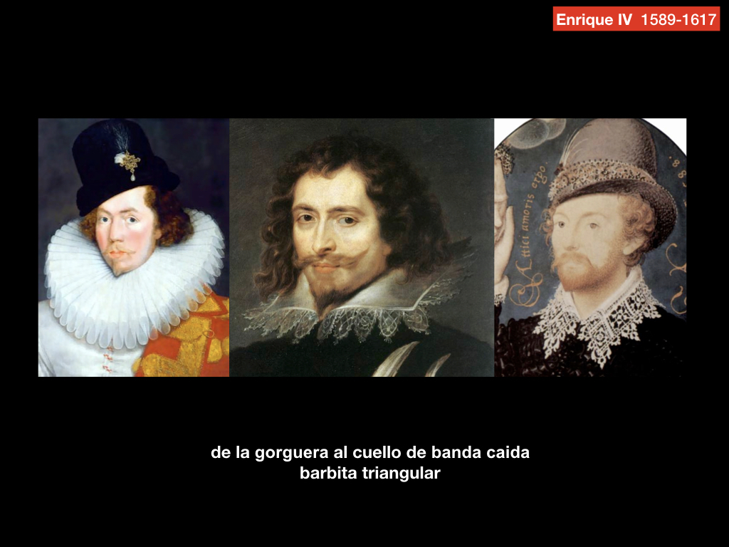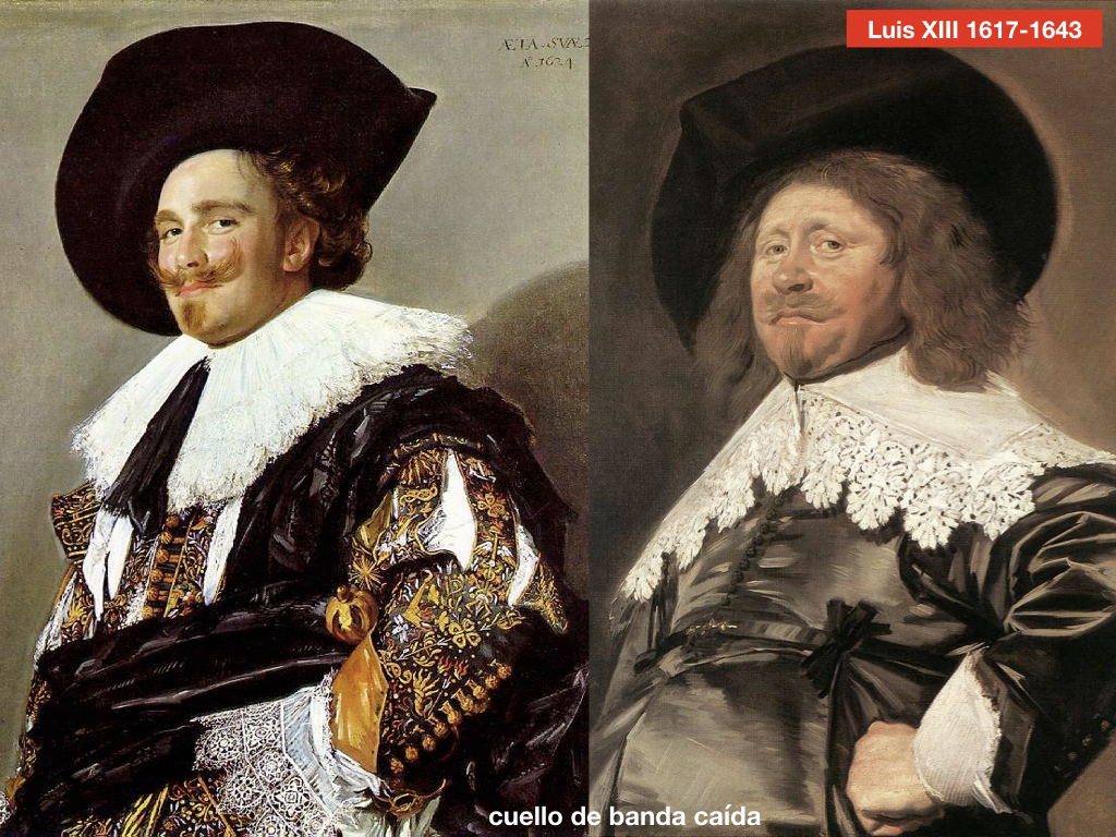 La gorguera desaparece por completo dejando lugar al cuello de banda caída.