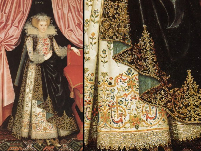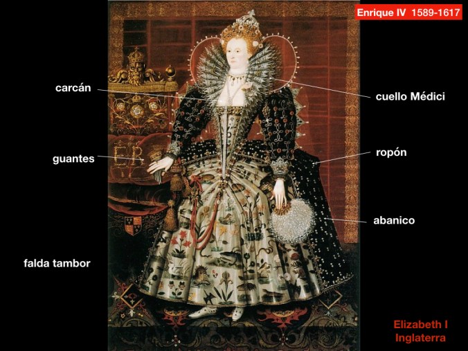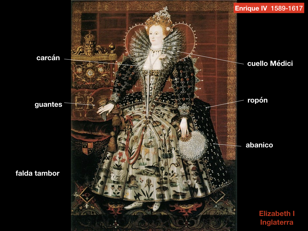 Elizabeth I gobierna Inglaterra hasta su muerte en 1603, influenciando fuertemente el estilo femenino de los primeros años del Barroco.