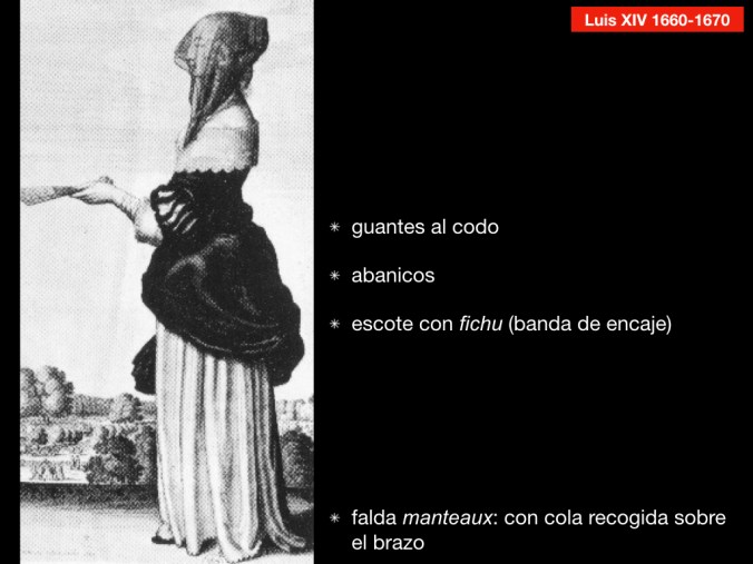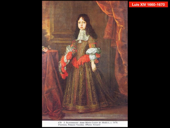 Podemos analizar la evolución del traje durante el siglo XVII y principios del XVIII tomando cada uno de los reinados franceses como una etapa con sus características propias.